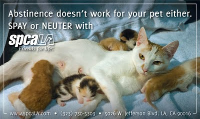 Please spay and neuter, or sponsor the spay/neuter of an animal, because abstinence doesn’t work for your pet either.