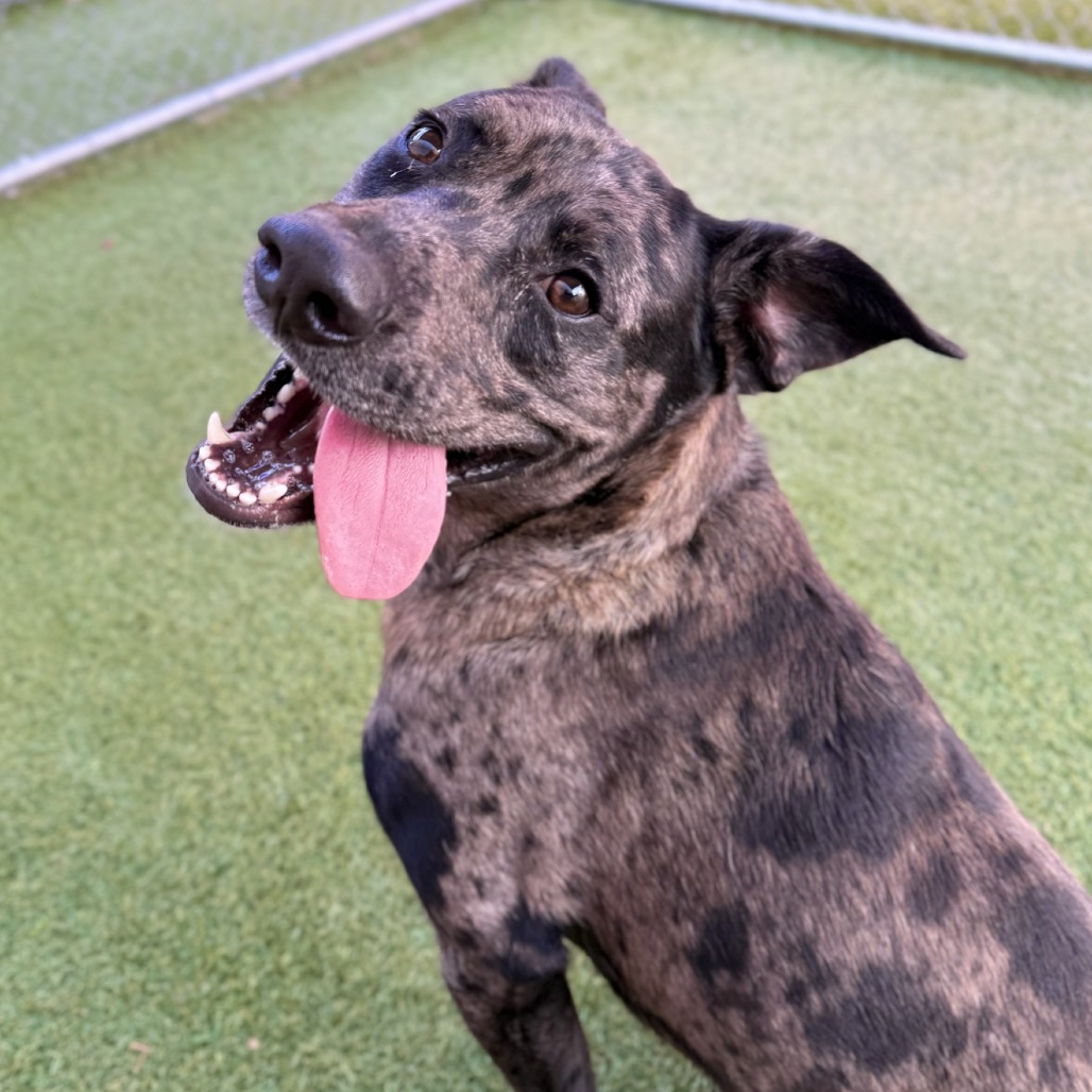 Meet Zeus, a playful Catahoula Leopard Dog mix looking for his new home. This sweet boy is very active but also loves to settle down for some cuddles. He enjoys playing fetch, chasing toys, and going on long walks. He is treat-motivated and would love to find a family who will continue his training. Zeus would do best in an active home with no cats or other small animals. Come in today and see if lightning strikes!