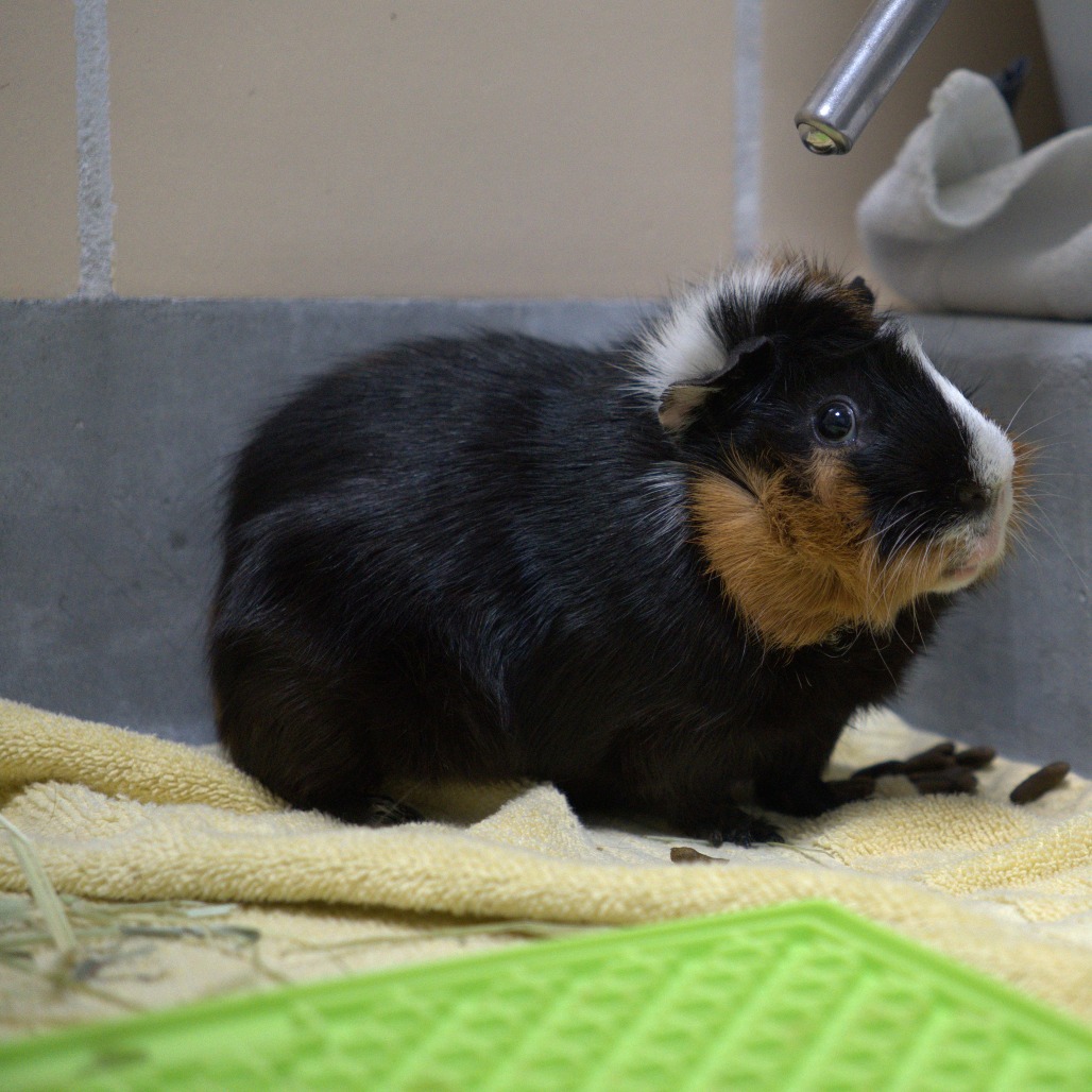 This sweet two year old male guinea pig is friendly, socialized, and comfortable being handled. He enjoys gentle attention and does well when being held, making him a lovely little companion for someone looking for a calm and affectionate pet. Shadow is part of a bonded pair with his buddy Domino, and the two share a close connection, so they will need to be adopted together. It's like they always say, 2 guinea pigs are better than one!