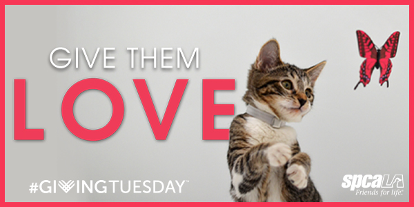 Give to your spcaLA on Giving Tuesday, the global day of charity. Make a donation on spcaLA.com and your gift will be DOUBLED from now until Dec 31st, when you donate online!